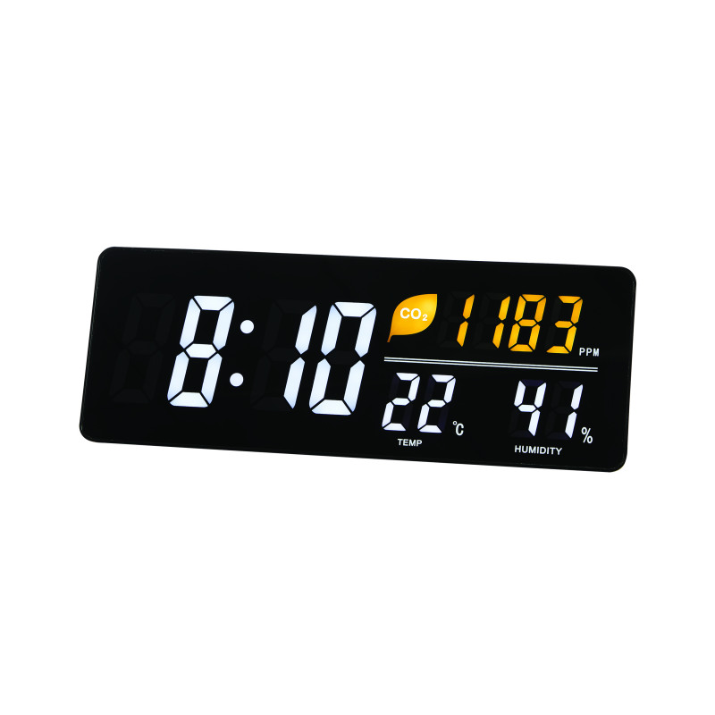 Alba LED Wall Clock With CO2 Level Temperature and Humidity Sensor Black - HORDGTL CO2 UK