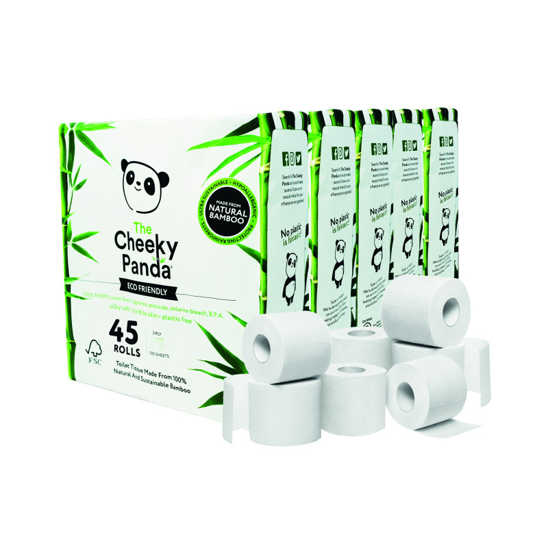 Cheeky Panda Sustainable Plastic-Free Bamboo Toilet Tissue 3 Ply 200 Sheets Per Roll 5 Packs Of 9 Rolls (Pack 45 Rolls) - PFTOILT9X5