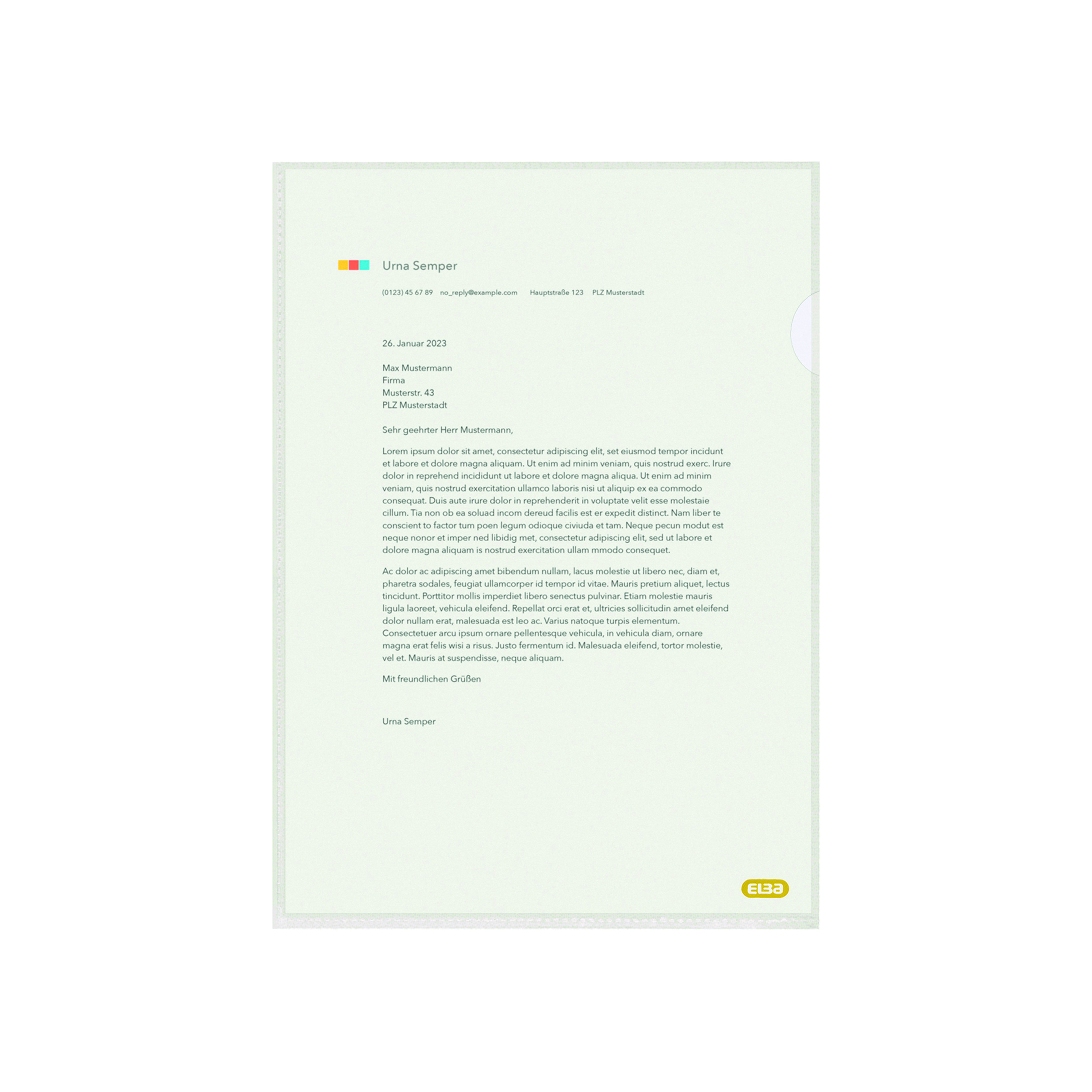 Discover the ELBA L-Folder – your eco-conscious choice for document protection! Crafted from premium recycled PE material certified with the Blue Angel and made from at least 80% post-consumer recycled material, our L-folder makes a real statement for sustainability. With a thickness of 100µm, it not only offers top-notch protection for your documents but also exceptional stability that you can feel. Its generous size comfortably accommodates up to 20 DIN A4 sheets, allowing you to keep your documents organized and secure. With the ELBA L-Folder, you make an environmentally friendly choice without compromising on quality. Protect your documents sustainably and effectively with our ELBA L-Folder!