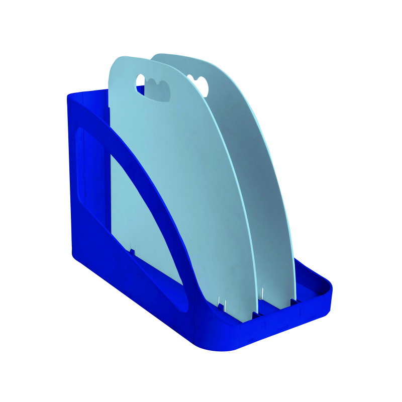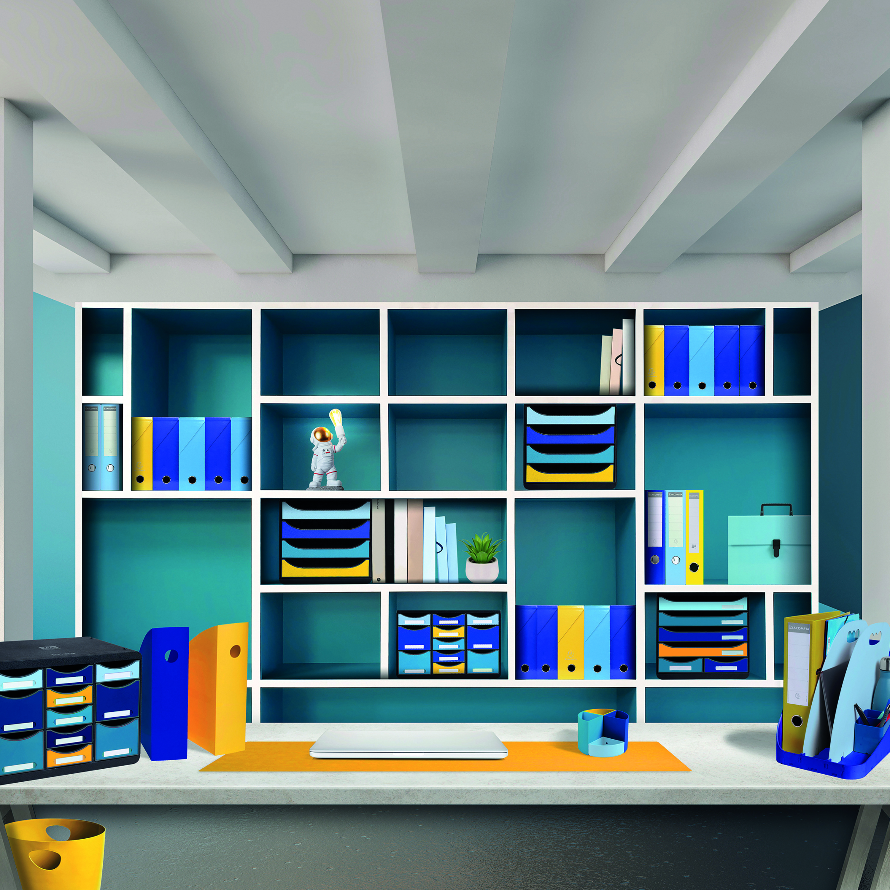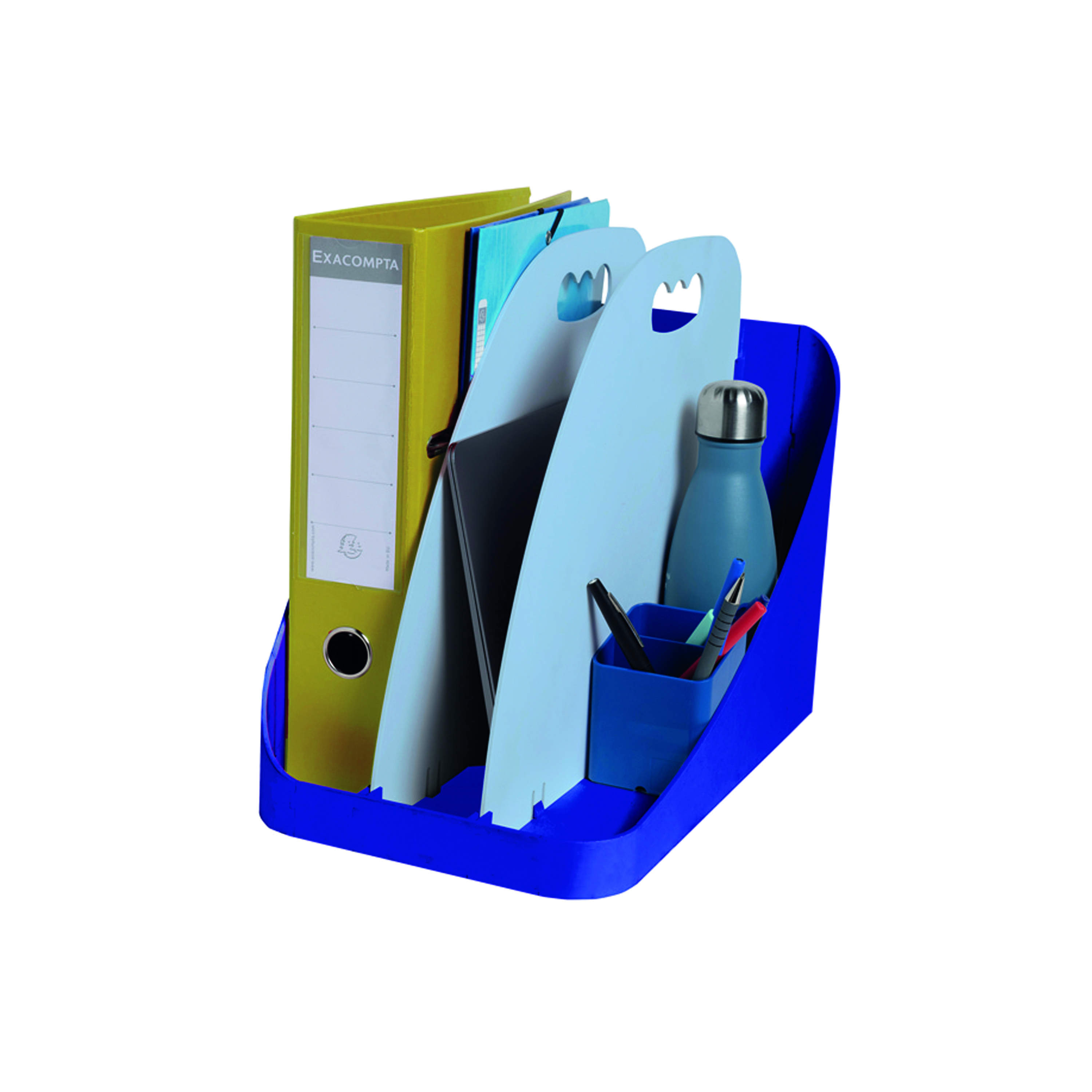 This environmentally friendly lightweight desktop sorter is made from 100% recycled plastic, featuring three sections to store desktop accessories both large and small. Ideal for small objects such as pencil pots along with A4+ lever arch files and more, the durable, brightly coloured sorter is supplied in blue.
