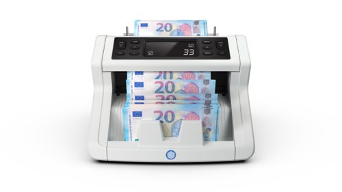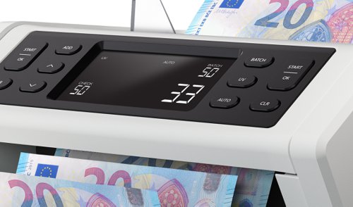 The Safescan 2210’s back-loading hopper can hold up to 300 banknotes and accurately count them, up to 1.000 notes per minute. Today’s currencies are printed with sophisticated security features that make it hard for counterfeiters to succeed. The 2210 automatically checks every banknote for two distinct security traits: UV markings and bill size. It will pause and beep to alert you when it encounters a suspicious bill; simply remove the offender and press start to resume counting.