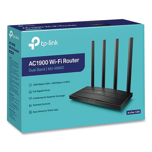TP Link C80 AC1900 MU MIMO WiFi 4 Port Gigabit Ethernet Router Black